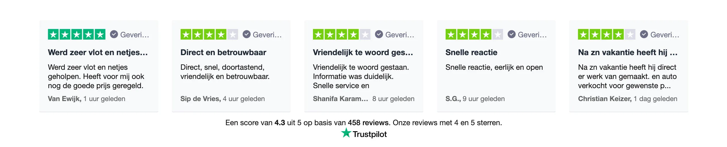 Klanten waarderen ons gemiddeld met een 4.3
